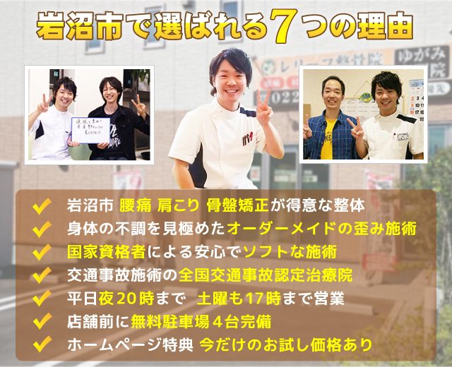 岩沼市の整体 腰痛 肩こり 骨盤矯正 メニュー料金
