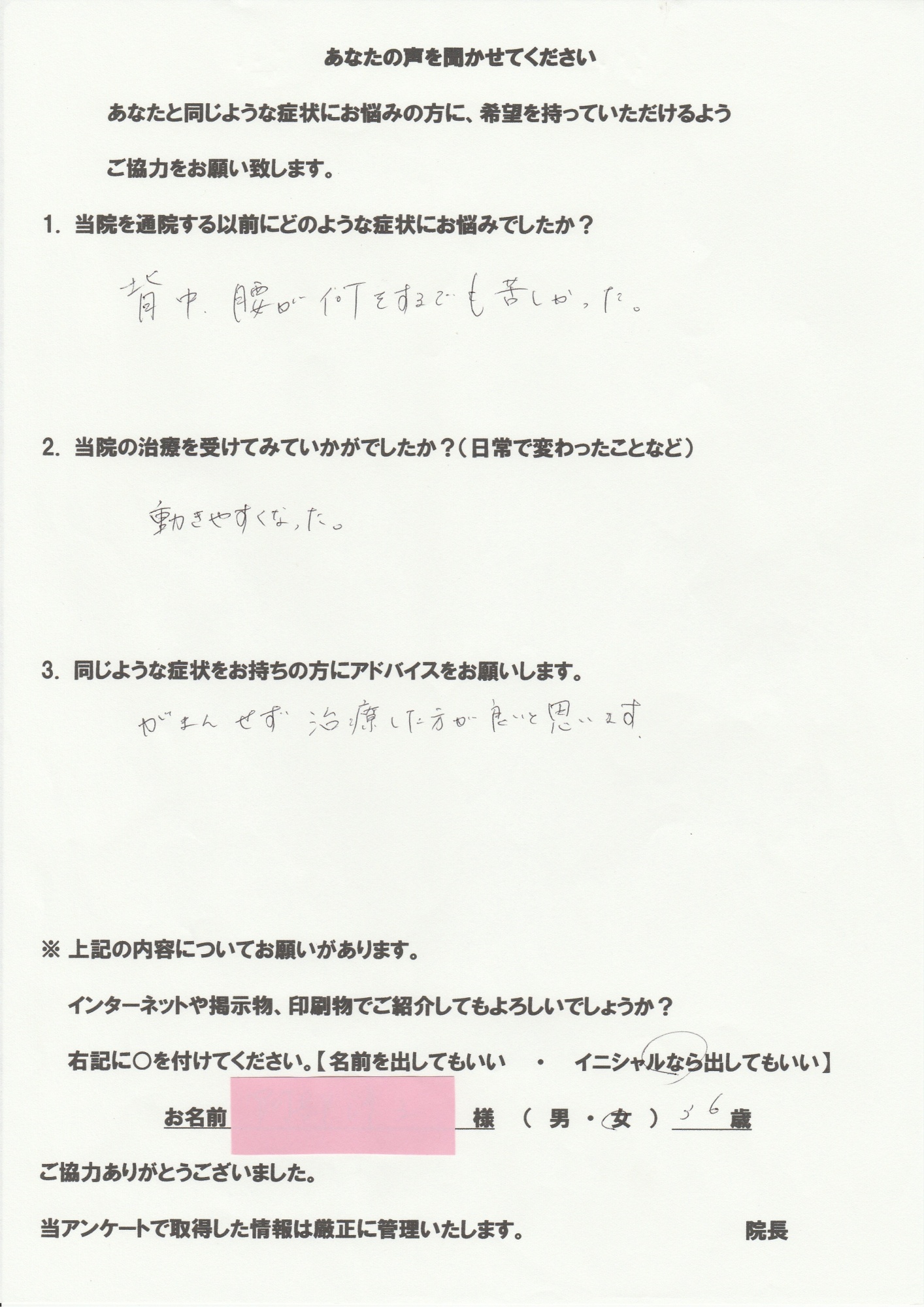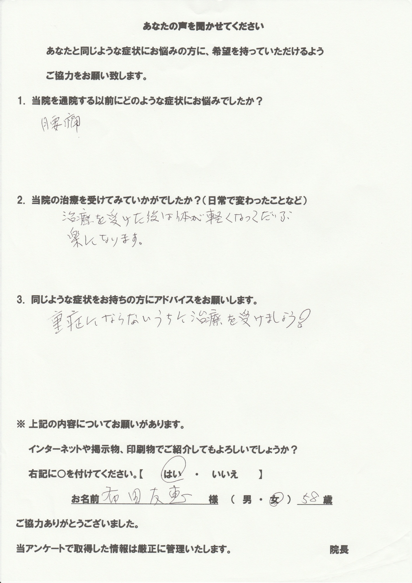 治療を受けた後は体が軽くなってだいぶ楽になります。