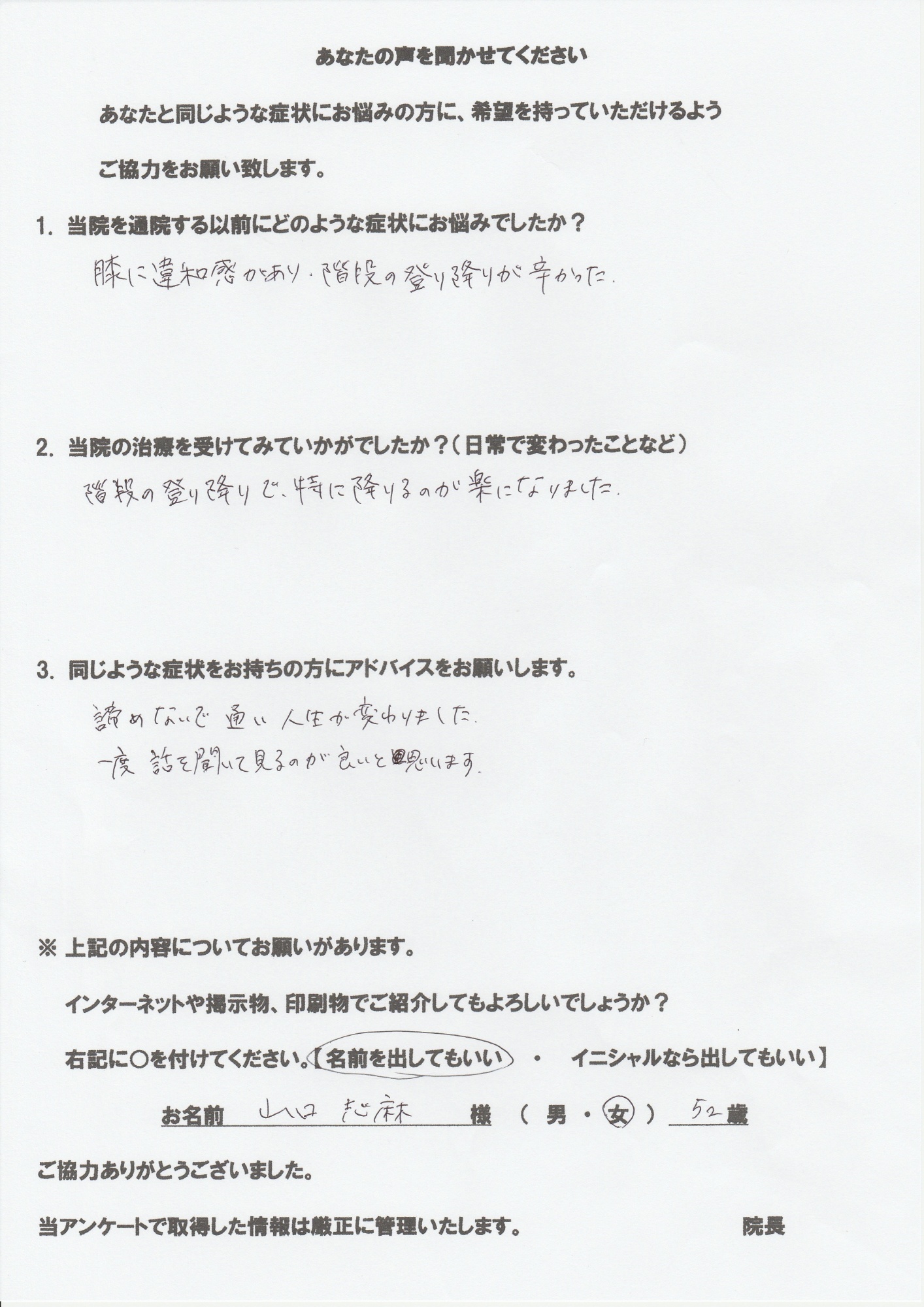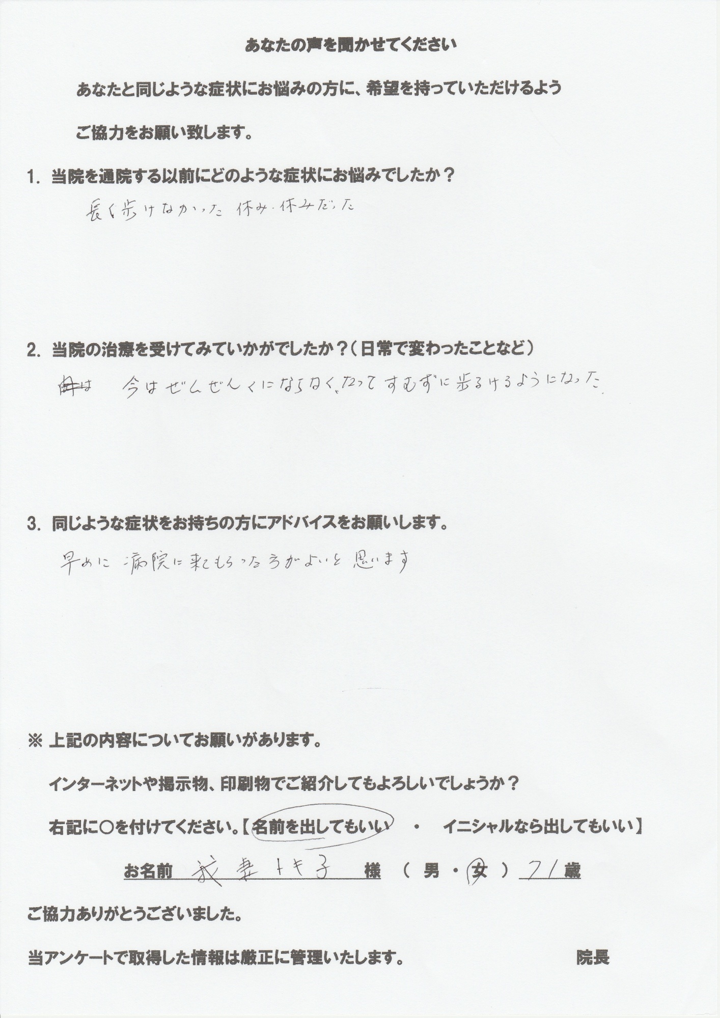 「散歩が楽にできるようになり、台所仕事も楽しくなりました」