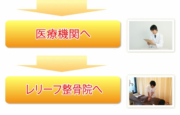 次に、整形外科などを経て、最後に「レリーフ整骨院」にご連絡・ご相談下さい。