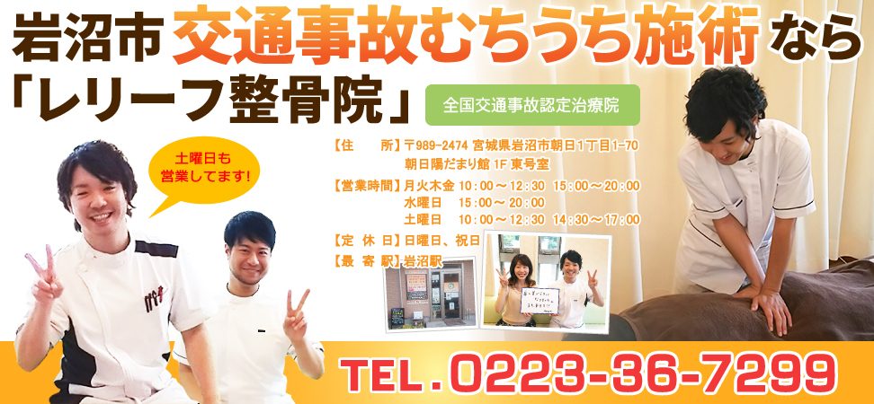 岩沼市の交通事故むちうち施術なら「レリーフ整骨院」にお任せ下さい